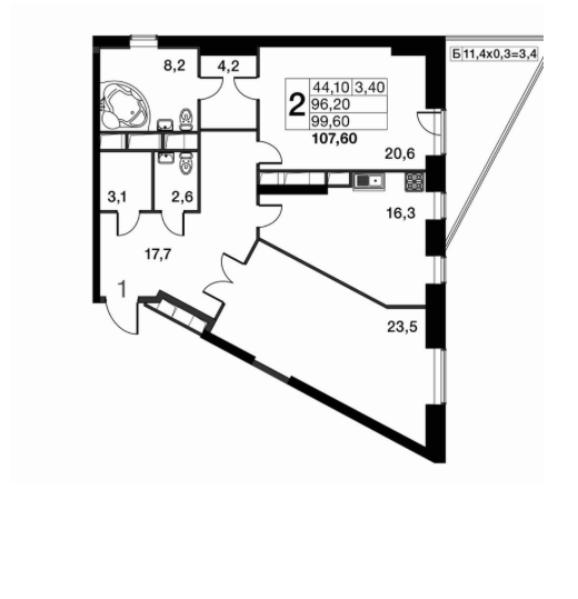 99,6 м2