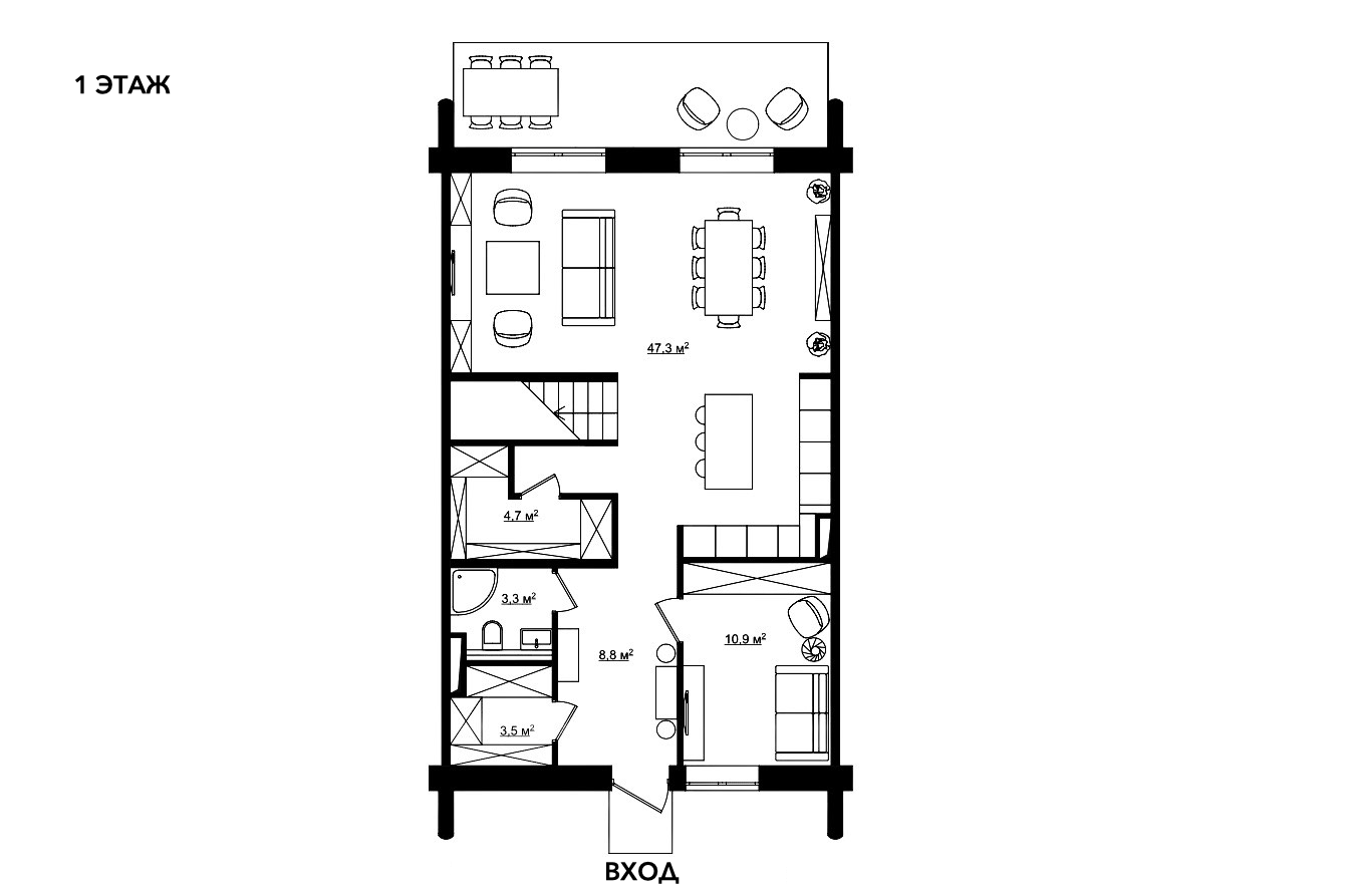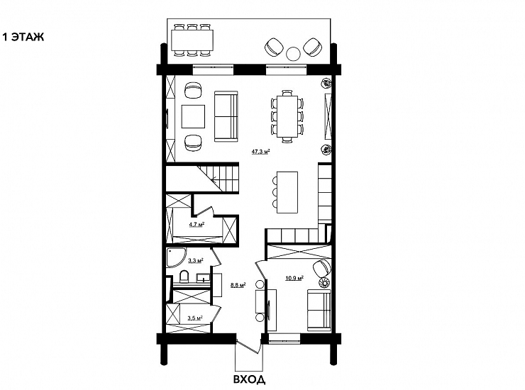 Таун-хаус площадью 234 кв. м. расположен на 1 линии.